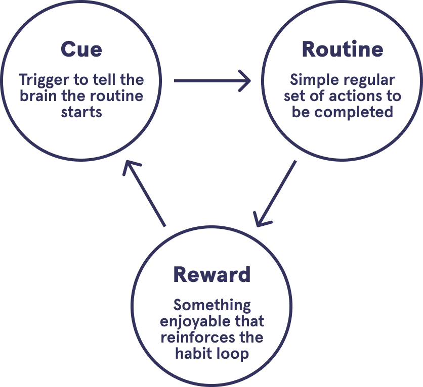 A habit is an action we do often in a regular and repeated way. Routine is a regular way of doing things in a particular order. A routine is made of several habits. The main difference between habit and routine is that habit is a recurrent, often unconscious action whereas routine is a set of habits.