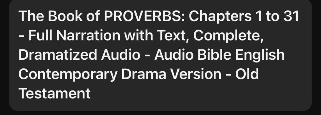 Click the link to listen to The Book of Proverbs https://youtu.be/zBPSUjphjSY?si=f7vM7vZb82rBzPoQ