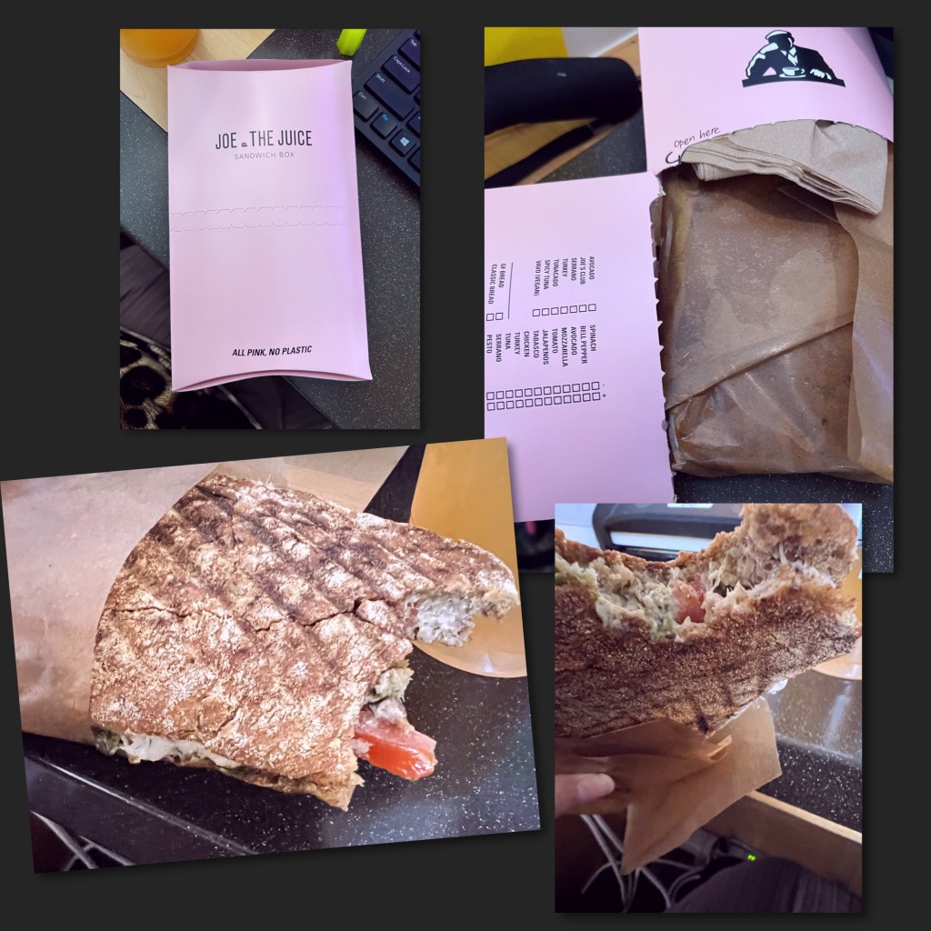 The packaging immediately caught my eye. Their pink sandwich box is sleek, eco-friendly (“All pink, no plastic”), and honestly, just fun to open. It kept the sandwich cool and fresh until my lunch break — such a pleasant surprise in itself.