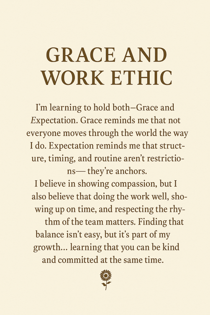 Grace reminds me that not everyone moves through the world the way I do. Expectation reminds me that structure, timing, and routine aren’t restrictions — they’re anchors.