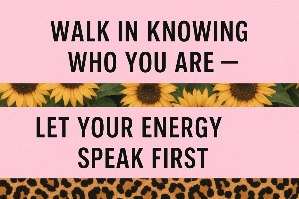 I want people to sense that I’m warm, present, and grounded — the kind of woman who can make you laugh, tell you the truth without sugarcoating, and still leave you feeling seen, not judged. I want them to catch the vibe that I carry my own weather: calm when I choose, sunshine when it’s needed, boundaries when it’s required.