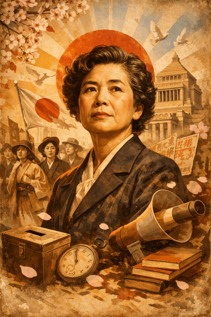 She organized women when it was dangerous to do so. She challenged laws that treated women as dependents rather than citizens. She believed—steadfastly—that democracy without women wasn’t democracy at all. And when Japan finally granted women the right to vote after World War II, she didn’t step aside and let others take credit.