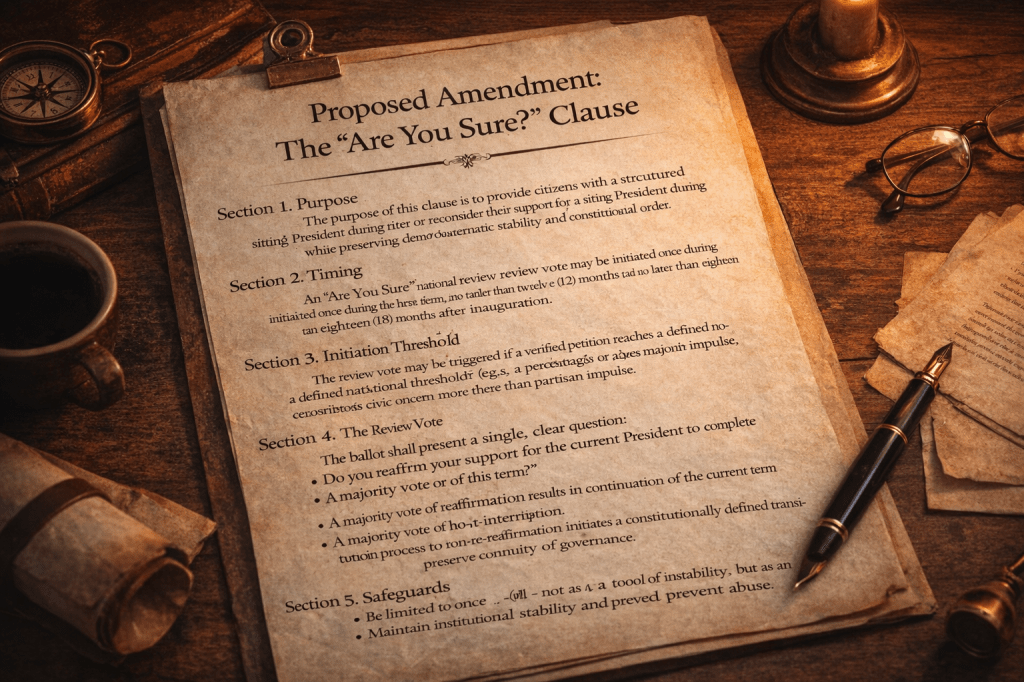 But wouldn’t it be interesting if somewhere along the way — maybe year one — the public had a structured, calm, democratic opportunity to say: