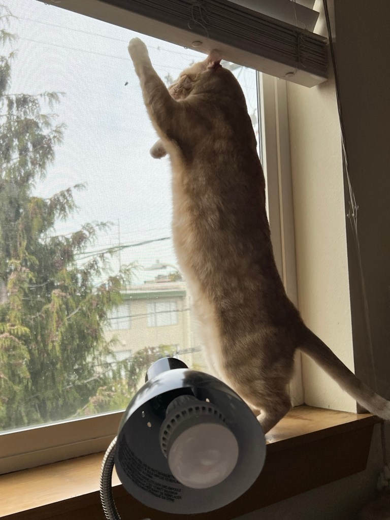 trying to catch a fly that had the nerve to land on the screen