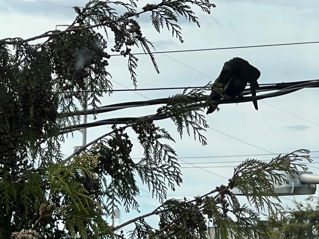 and later, there he was again—up on the wire—just grooming himself like: